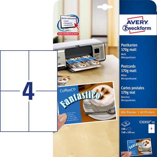 Avery Zweckform C32252-25 Karty katalogowe 148x105mm 170g. matowe 100 szt.