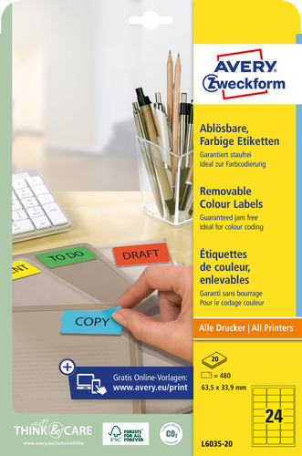 L6035-20 Etykieta kolorowa Avery Zweckform rozmiar 63,5 x 33,9 żółte 480 szt.