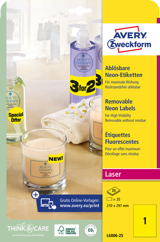 Etykieta neonowa Avery Zweckform L6006-25 210 x 297 mm żółte 25 etykiet