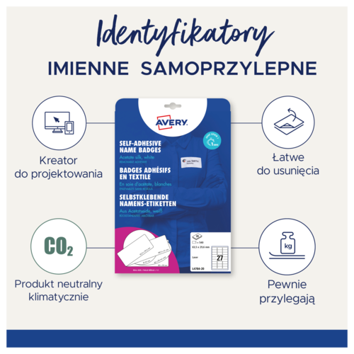 Samoprzylepne identyfikatory Avery Zweckform J4881-20 foliowe usuwalne Ø 65mm