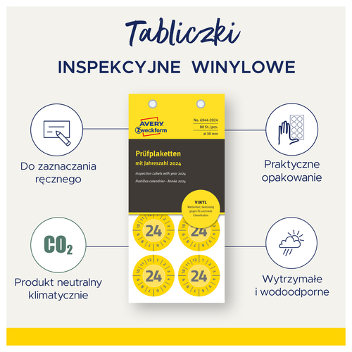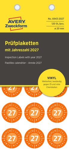 Tabliczki inspekcyjne winylowe 2027r. Avery Zweckform 6943-2027 Ø20 120 szt.